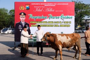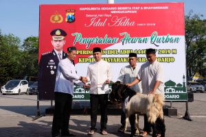 “Semoga pelaksanaan penyaluran hewan qurban dan daging hewan qurban, bermanfaat bagi sesama. Serta pada peringatan Hari Raya Idul Adha 1440 H tahun 2019 ini, kami dapat menanamkan nilai-nilai keikhlasan dalam mengabdi sebagai insan Bhayangkara yang bertakwa kepada Allah SWT,” jelas Kapolresta Sidoarjo Kombes Pol. Zain Dwi Nugroho.