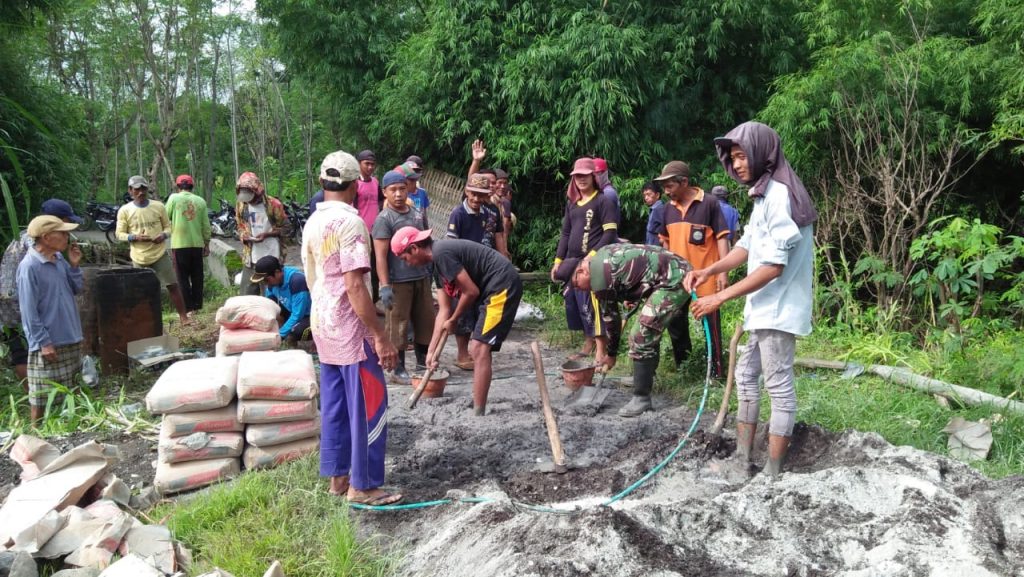 Babinsa Koramil 0820/03 Leces Perbaiki Jalan yang Putus Bareng Warga