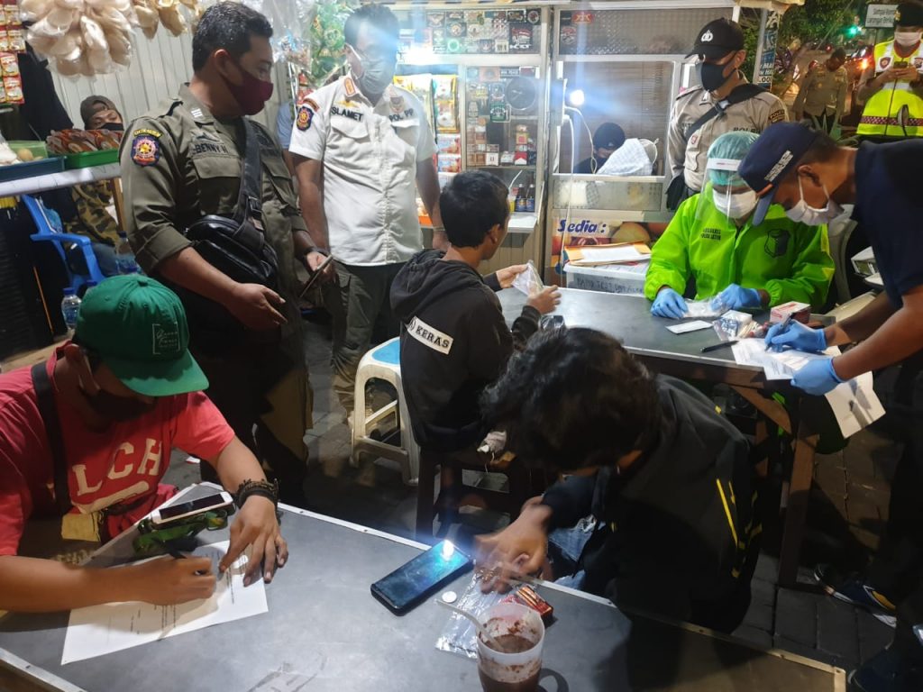 Saat itu, anggota Biddokkes Polda Jatim melakukan Rapid Test terhadap 3 orang pengunjung Warkop yang diduga terindikasi, namun hasil yang didapat negatif, lalu anggota Satpol PP melakukan penyemprotan Disinfektan di area Warkop tersebut.