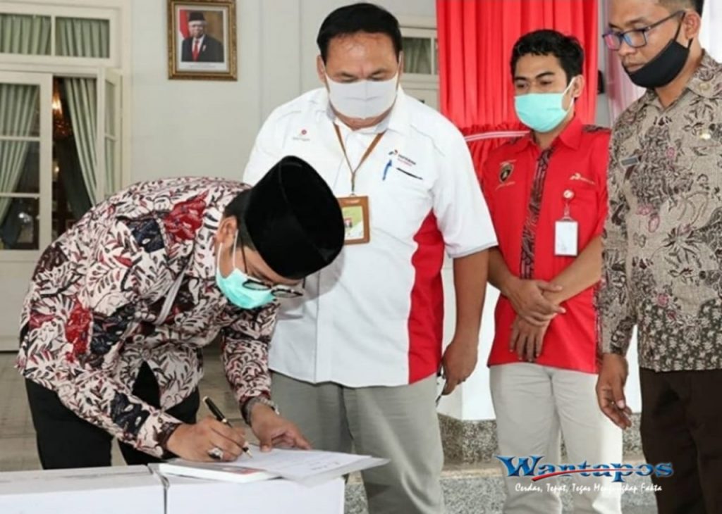 BANGKALAN, Wartapos.id – Pemerintah Kabupaten Bangkalan dalam menghadapi pandemi wabah Covid-19 mendapat bantuan bantuan berupa 200 paket sembako dari Pertamina Hulu Energi West Madura Offshore (PHE WMO). Paket sembako untuk warga terdampak Covid-19 tersebut diberikan langsung oleh Field Relation PHE WMO kepada Bupati Bangkalan di Pendopo Agung Bangkalan pada Selasa (16/06/2020).