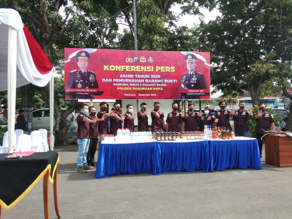 Pasuruan, Wartapos.Id – Akhir tahu 2020 polres passuruan kota menggelar konfernsi pers dan pemusnahan barang bukti di halaman Gedung Abdurahman polres pasuruan kota, selasa(29/12/2020).