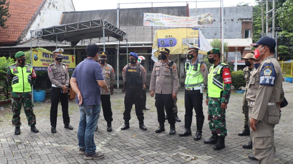 Petugas juga berkoordinasi dengan petugas pengamanan dari Gereja untuk memberikan himbauan kepada jemaat yang hadir agar selalu menerapkan 5 M ( Memakai Masker, Menjaga Jarak, Mencuci Tangan, Menghindari Kerumunan, Mengurangi Mobilitas ). selain itu