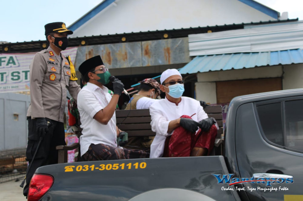 Bupati Bangkalan, R Abdul Latif Amin Imron, Dandim 0829/Bangkalan, Letkol Kav Ari Setyawan Wibowo, S.Sos dan Kapolres Bangkalan, AKBP Didik Hariyanto SIK turun memberikan himbauan langsung kepada masyarakat menggunakan mobil double cabin milik kepolisian. Himbauan ini pun dilakukan di kecamatan Arosbaya dan Kecamatan Geger pada Kamis (10/06/2021).