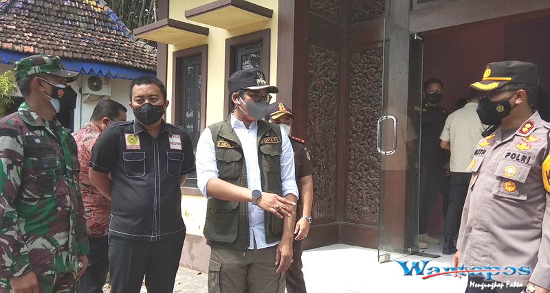 Bangkalan, Wartapos – Pelaksanaan operasi Yustisi penegakan disiplin penggunaan masker di lokasi Taman Paseban Bangkalan dipantau langsung oleh Bupati Bangkalan, R Abdul Latif Amin Imron bersama Forkopimda. Operasi yustisi pada Kamis (08/07/2021) dimulai sejak pukul 09.00 WIB hingga siang hari tersebut berhasil menjaring 20 orang pengguna yang melintas di Jalan Ahmad Yani depan Taman Paseban.