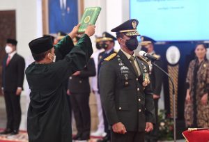 Jakarta, Wartapos.id – Joko Widodo pada Rabu, 17 November 2021, melantik dan mengambil sumpah jabatan Jenderal Andika Perkasa sebagai Panglima Tentara Nasional Indonesia (TNI). Acara pelantikan berlangsung di Istana Negara, Jakarta, dengan menerapkan protokol kesehatan.