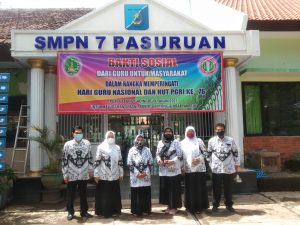 Kegiatan baksos tersebut dengan mengambil tema ” Dari Guru Untuk Masyarakat ” acara tersebut digelar pada pukul 07.00 wib bertempat di depan SMPN 7 Jalan Simpang Slamet Riyadi nomor 2 Sebani Gadingrejo Kota Pasuruan