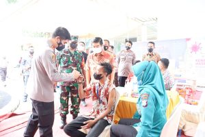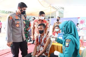 Mojokerto – Polresta Mojokerto bekerjasama dengan Manajemen PT Kitoshindo International Biotech (Kitoshindo Group) dalam rangka dukungan pencapaian vaksinasi 100 persen yang bertepatan dengan digelarnya Vaksinasi Secara Sersentak yang ditinjau laingsung Presiden Presiden Joko Widodo secara virtual.
