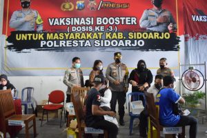 “Menjelang Ramadhan pelaksanaan vaksinasi dosis kedua maupun ketiga semakin kami gencarkan. Kali ini kami adakan vaksinasi booster menyasar bagi buruh atau pekerja. Karena saat libur Lebaran, kebanyakan mereka akan mudik kampung halaman,” jelas Kapolresta Sidoarjo Kombes Pol. Kusumo Wahyu Bintoro.