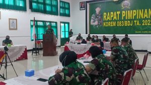 Rapat tersebut, dipimpin langsung oleh Danrem 083/Baladhika Jaya, Kolonel Inf Yudhi Prasetiyo. Rapat itu, digelar secara virtual.
