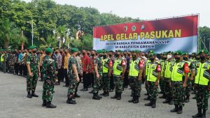 Sebelum Apel Gelar Pasukan selesai sebelumnya Kolonel Inf Jamaludin selaku Pimpinan Apel didampingi Dandim 0817/Gresik, melakukan pengecekan secara langsung Personil dan Materil serta kendaraan yang telah disiagakan diantaranya, kendaraan tempur, pemadam, kesehatan serta sarana prasarana yang telah disiapkan dari unsur instansi pemerintah Kabupaten Gresik.