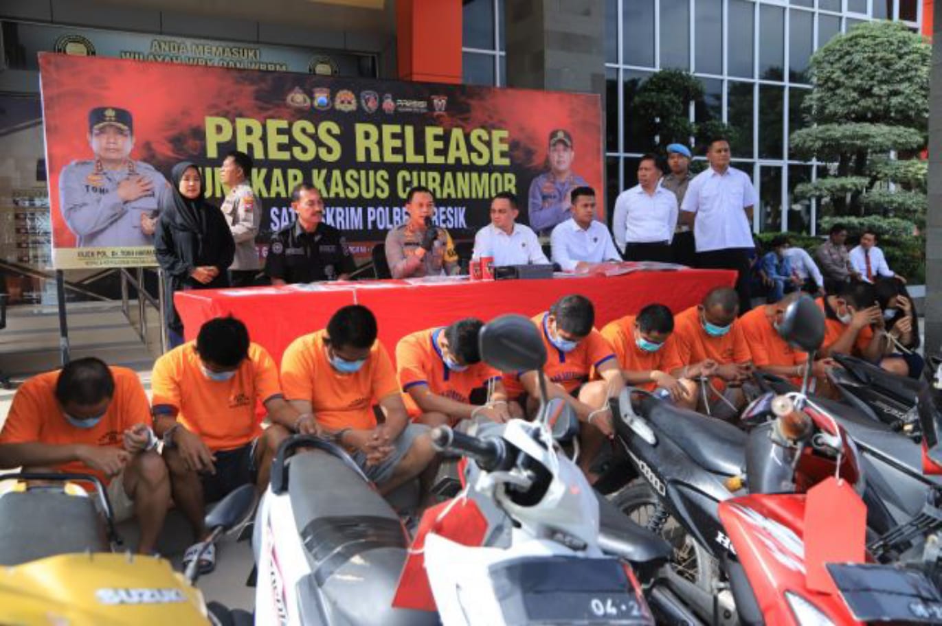 Gabungan wartawan dari berbagai media membagikan kurang lebih 200 kotak nasi dan air minum kepada pengendara sepeda motor yang melintas di depan Polsek Krian.