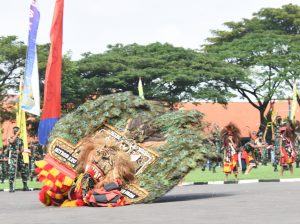 SURABAYA , Wartapos.id – Dalam rangka melestarikan budaya bangsa, TNI Angkatan Laut menggelar kesenian Reog Ponorogo yang dimainkan oleh ratusan prajurit siswa Komando Pembinaan Doktrin, Pendidikan dan Latihan TNI AL (Kodiklatal) pada peringatan Hari Pendidikan TNI Angkatan Laut atau Hardikal ke-76 Tahun 2022 di Lapangan Laut Maluku Kodiklatal Bumimoro Surabaya, Jumat (13/5/2022).