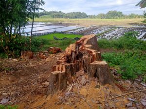 Dari itu semua, saat dikonfirmasi terkait hasil penebangan pohon tersebut atau barang buktinya, beliau mengatakan tidak ada barangnya.