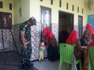 Gresik, Wartapos.id-Bertempat di Pos Pembantu Kesehatan Dusun Kemendung, Desa Ngembung, Kecamatan Cerme Serda Beni Murdani Babinsa Koramil 0817/08 Cerme melaksanakan pendampingan kegiatan Posyandu secara berkala yang diselenggarakan oleh petugas Kesehatan dari Puskesmas Dadapkuning untuk Warga Masyarakat Dusun Kemendung, Desa Ngembung dengan tetap mengikuti Protokol Kesehatan untuk mencegah penyebaran Virus Covid 19. Jumat(29/7/2022).