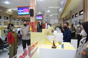 Layanan publik yang ditinjau Deputi Bidang Yanlik Kemenpan RB Diah Natalisa didampingi Kapolresta Sidoarjo Kombes Pol. Kusumo Wahyu Bintoro, layanan vaksinasi Covid-19 dan SKCK Keliling Online di Pos Polisi Taman Pinang Indah, kemudian peninjauan dilanjutkan di Mall Mini Pelayanan Polri (MMPP) Polresta Sidoarjo.