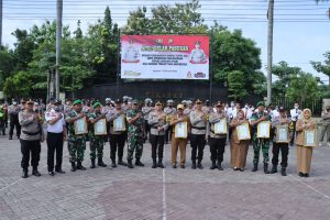 PenghargaanSinergisitas Forkopimcam dan tiga pilar tersebut diberikan bersamaan dengan dilaksanakannya Gelar Pasukan Operasi Keselamatan Semeru 2023 di halaman Apel Polres Nganjuk, Selasa (7/2/2023).
