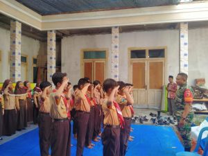 Surabaya, Wartapos.id– Bintara Pembina Desa (Babinsa) Kelurahan Nyamplungan Koramil 0830/03 Pabean Cantian Serda Ainur berikan materi Peraturan Baris Berbaris (PBB) kepada siswa-siswi Sekolah Dasar Mufidah No.3 Jl.Kalimas Udik III Kel.Nyamplungan Kec.Pabean Cantian, jumat (10/2/2023).