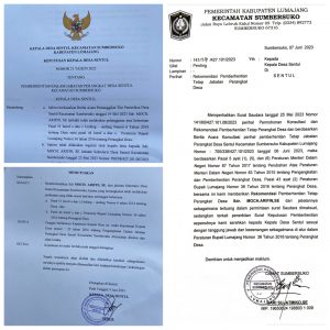 Lumajang Wartapos.id – Proses penerbitan SK pemberhentian Sekertaris desa (Sekdes) Sentul oleh Kepala Desa Setul Kecamatan Sumbersuko – Lumajang memakan waktu yang cukup panjang, Hal tersebut terjadi karena harus mengikuti beberapa tahapan – tahapan yang harus dilalui, dan akhirnya setelah mendapat surat rekomendasi dari Camat Sumbersuko perihal pemberhentian perangkat desa, Kepala Desa Sentul, Subur menerbitkan SK pemberhentian terhadap Sekdes Desa Sentul.