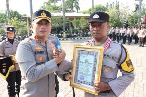 Nganjuk, Wartapos.id – Kapolres Nganjuk AKBP Muhammad, S.H., S.I.K., M.Si, memimpin upacara kenaikan pangkat pengabdian 1 anggota Polres Nganjuk tingkat Perwira dan memberi “Reward” (Penghargaan) kepada 10 anggota yang berprestasi di lapangan apel Polres Nganjuk, Senin(7/8/2023) pagi.