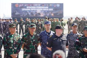 Sidoarjo, Wartapos.id— Pangdam V/Brawijaya Mayjen TNI Rudy Saladin, M. A, menghadiri pembukaan Latgabma Super Garuda Shield Tahun 2024 yang digelar di Base Ops Pangkalan Udara TNI Angkatan Laut Juanda, Sidoarjo. Senin (26/08/2024).
