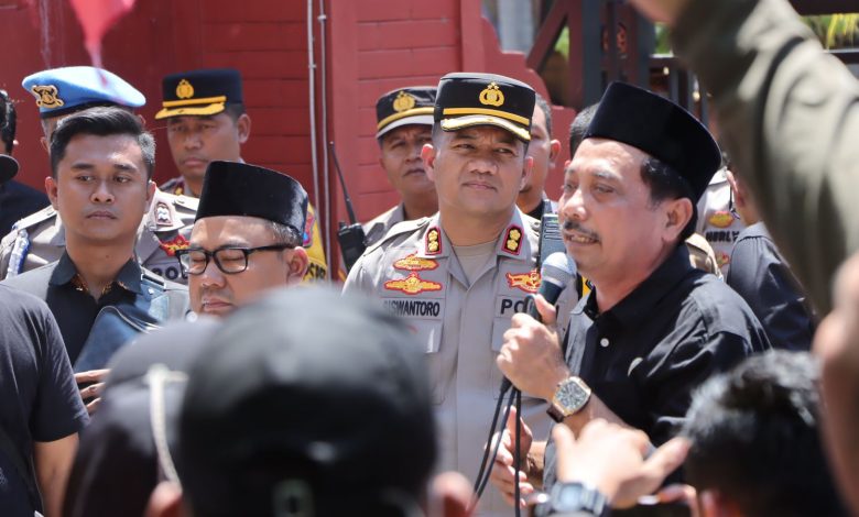 “Kami ada di sini untuk melayani dan melindungi. Sampaikan aspirasi dengan damai dan santun. Mari kita jaga Nganjuk tetap aman dan nyaman,” ujar AKBP Siswantoro.