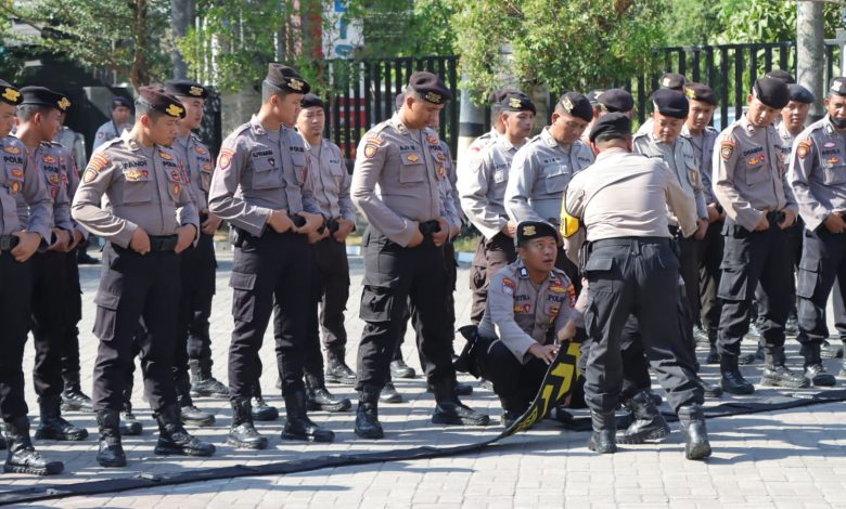 Polres Nganjuk Menggelar Latihan Penyegaran Kompi Pengendalian Massa (Dalmas)