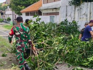 Surabaya,Wartapos.id— Dalam semangat kebersamaan dan gotong royong, Babinsa Kelurahan Dukuh Kupang, Koramil 0830/19 Karangpilang, Serda Sudarmawan, bersama Bhabinkamtibmas Bripka Prayogo, Ketua RT 07 serta warga sekitar, melaksanakan kegiatan kerja bakti di lingkungan RT 07 RW 01 Kelurahan Dukuh Kupang. Kegiatan tersebut difokuskan pada perampingan ranting pohon yang mengganggu jalan.minggu (26/01)