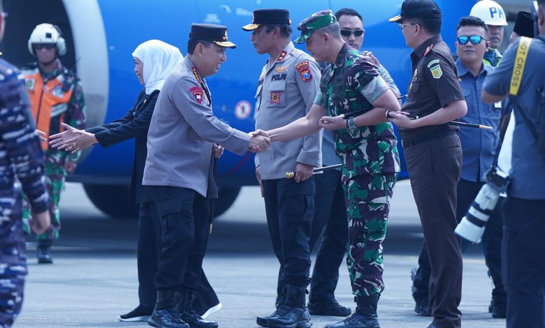 Selain disambut oleh Pangdam, kedatangan Kapolri turut disambut oleh Gubernur Jawa Timur, Khofifah Indar Parawansa, Kapolda Jatim, Irjen Pol Nanang Avianto dan Kajati Jatim Dr. Kuntadi S.H.M.H.