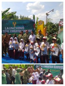 ” Selain mengikuti agenda utama peluncuran program jembatan secara nasional, kegiatan di wilayah Kodim 0810/Nganjuk juga diisi dengan kegiatan bakti sosial yang menyentuh langsung masyarakat. Pangdam bersama rombongan menyerahkan bantuan sembako kepada warga di wilayah Ngronggo sebagai bentuk kepedulian terhadap masyarakat.